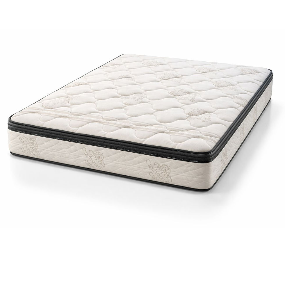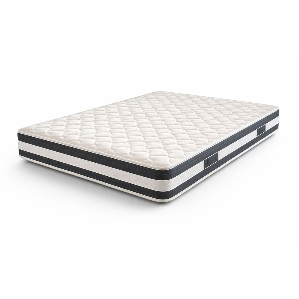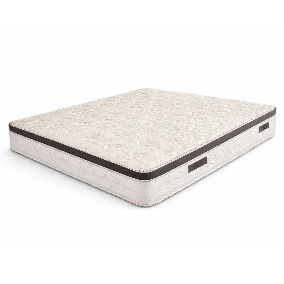 Matelas haut de gamme combinant ressorts ensachés et sur-matelas.